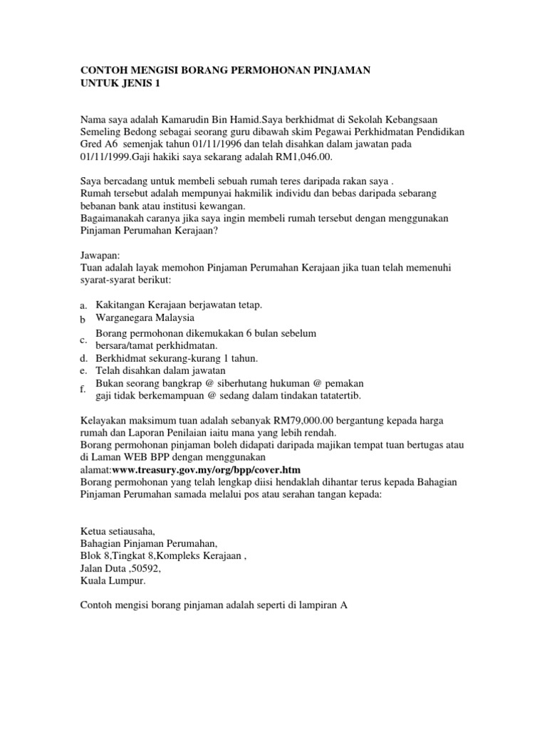 Borang 1 Pinjaman Perumahan Kerajaan Pdf